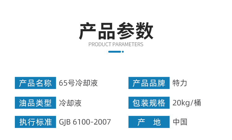 該產(chǎn)品符合國軍標GJB6100-2007執(zhí)行標準,與長城AF65號冷卻液屬于同一種類型的產(chǎn)品,可以互為替換。除了65號之外,特力還提供冷卻液的標號、包裝定制功能:包括40號、45號、50號、60號以及4kg、20kg以及客戶所需包裝服務,歡迎咨詢!