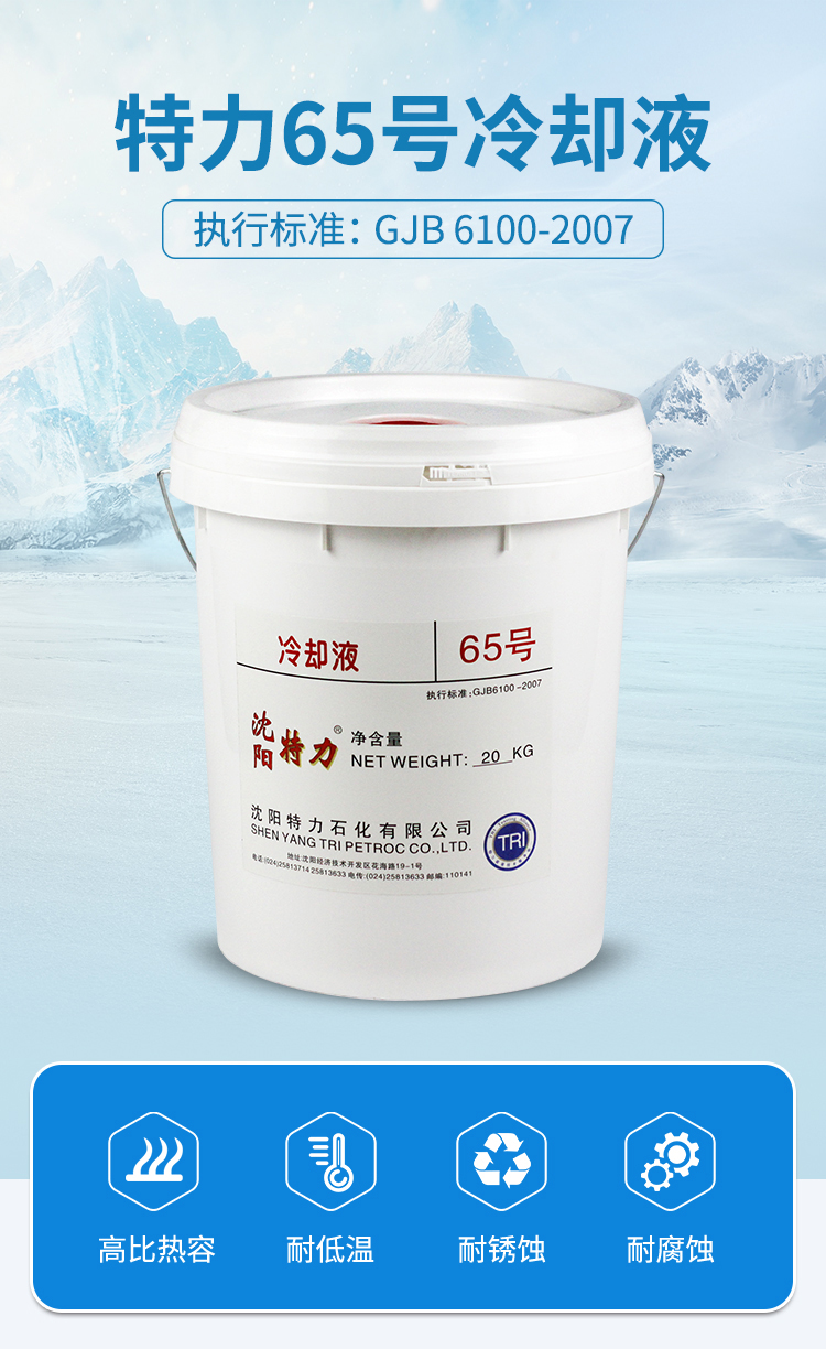 為了滿足特種裝備在特殊場景下的冷卻要求,國軍標GJB 6100-2007對冷卻液提出了更高的要求:大比熱容、優(yōu)良的低溫性能、優(yōu)良的防腐能力。65號冷卻液正是契合這一標準的產(chǎn)品,已被多個科研院所、部隊單位用作制式冷卻液。主要有以下特點: