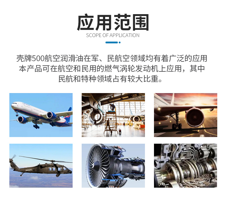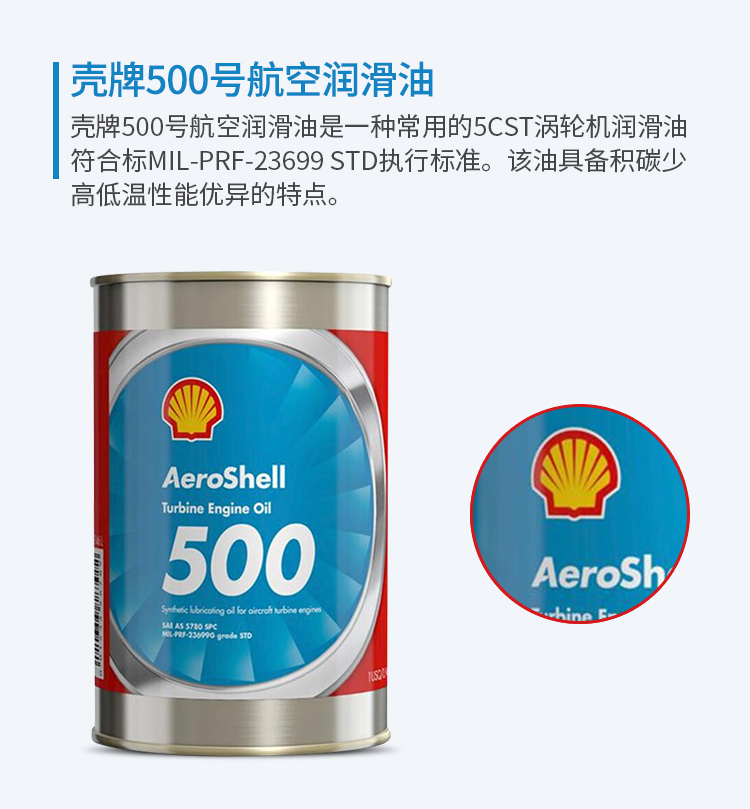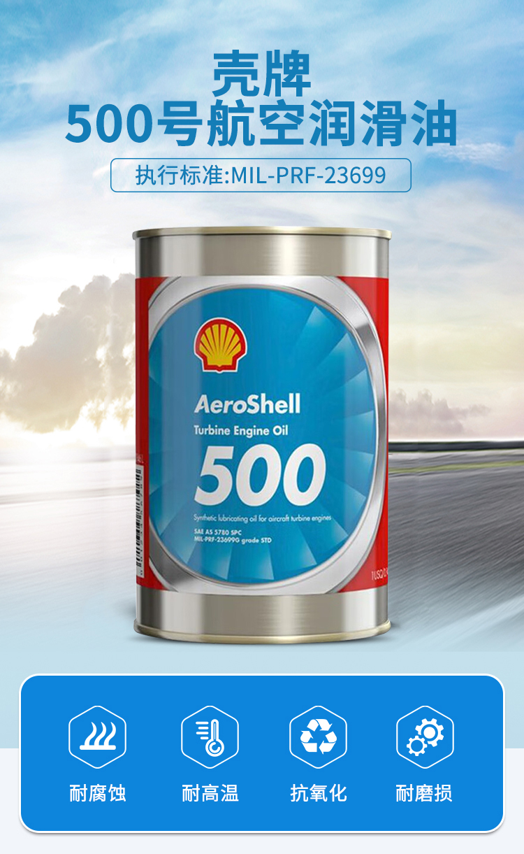 AeroShell Turbine Oil 500是一種常用的5cSt渦輪機潤滑油,符合標(biāo)MIL-PRF-23699 STD執(zhí)行標(biāo)準(zhǔn)。該油具備積碳少、高低溫性能較好的特點。殼牌500航空潤滑油在軍、民航空領(lǐng)域均有著廣泛的應(yīng)用。
