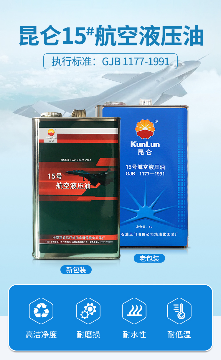 昆侖15號(hào)航空液壓油的研發(fā),是為了取代10號(hào)和12號(hào)航空液壓油的,擁有更高的純凈度,適用于更精密的飛機(jī)和其他機(jī)械設(shè)備。該油符合國軍標(biāo)GJB 1177(A)-1991(2013) ,與滿足美軍標(biāo)MIL - L - 5606E標(biāo)準(zhǔn)的液壓油性能相當(dāng)。目前,部隊(duì)已完成15號(hào)液壓油的換裝工作。