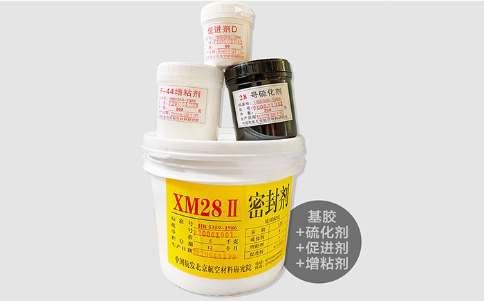 和我們常見的雙組分膠粘劑不同,XM28密封劑是以液體聚硫橡膠為基礎(chǔ)的四組分室溫硫化聚硫密封劑。該產(chǎn)品是由北京航空材料研究院研發(fā)生產(chǎn)的,已經(jīng)在航空飛機(jī)上投入使用,并且使用效果良好。