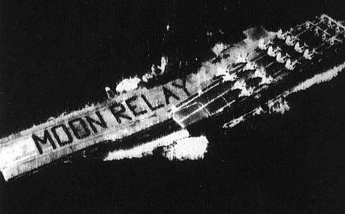 該項目使用月球作為通信中繼設備,并于1959年成功利用月球表面將信號從華盛頓中繼到夏威夷和美國間諜船。1960 年,該系統(tǒng)正式啟用,在海軍軍官之間進行信息傳輸。圖片上美國的水手們在船上拼出了“MOON RELAY”的圖案。