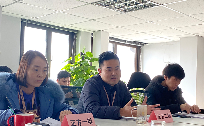 此次辯論賽分為四組,兩兩對(duì)決,勝利的隊(duì)伍參與決賽的競(jìng)爭(zhēng)。初賽的辯論題目分別是:“正方:法大于情,反方:情大于法”以及“正方:知足長(zhǎng)樂(lè),反方:不知足長(zhǎng)樂(lè)”于2023年1月7日開(kāi)始,決賽的辯論題目是“正方:不以成敗論英雄、反方:英雄自以成敗論”于2023年1月11日舉辦。由宋總擔(dān)任裁判員、陳經(jīng)理和文經(jīng)理分別擔(dān)任觀察員,公司所有同事觀看本次辯論大賽。